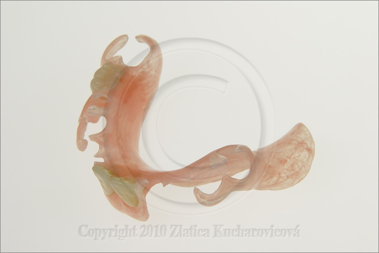 Klasické snímací náhrady - zhotovuji též náhrady s jednoduchými ret. prvky, s litými prvky, s litou spojovací deskou, skelety s podjazykovým třmenem, s průběžnou sponou, skelety s před.a zadním patrovým třmenem, celkové náhrady i transparentní patro, imediátní a hybridní náhrady, spony růžové, průhledné i zlacené, opravy.